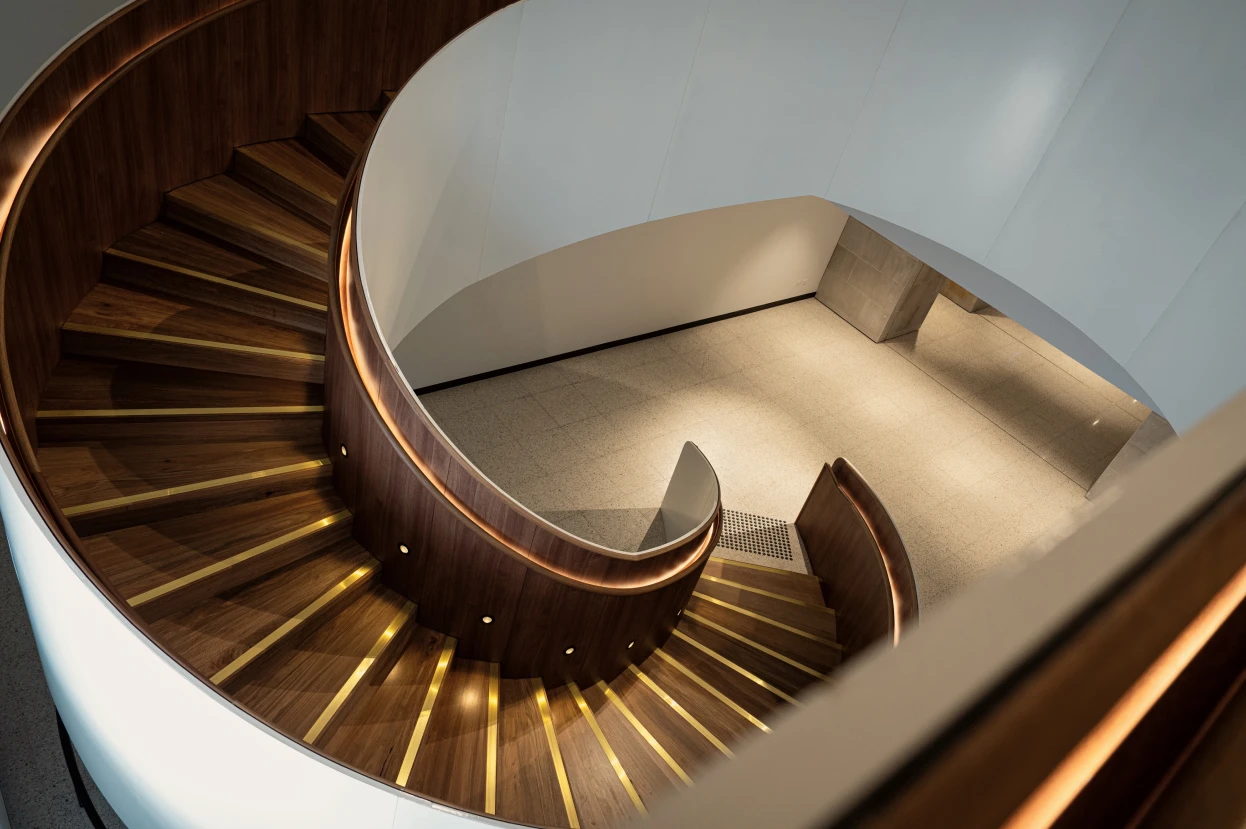 The Australian War Memorial engaged Details by Ned to realise a highly resolved spiral stair concept from a set of 3D renders and outline drawings with minimal construction detail. The brief required a buildable solution that preserved the sculptural intent, met stringent building regulations and would stand up to heavy public use.